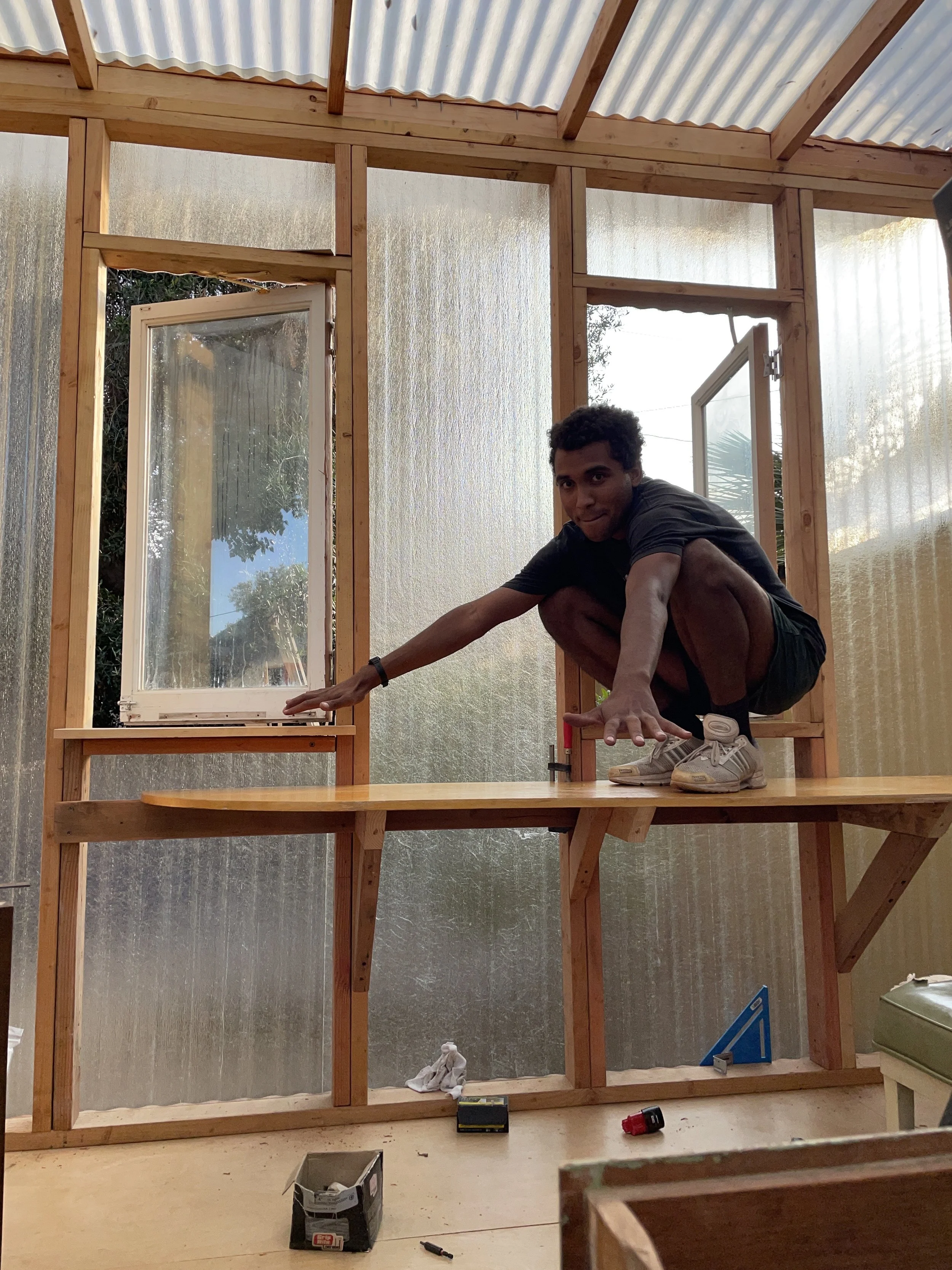 After I had done the floors and the fiberglass walls, I had originally anticipated putting plywood on the interior walls. But I got so into the fiberglass, and it turned out to not be unbearably hot with all the windows open. So now I don’t really plan on putting plywood interior walls up. Just gonna leave it light.